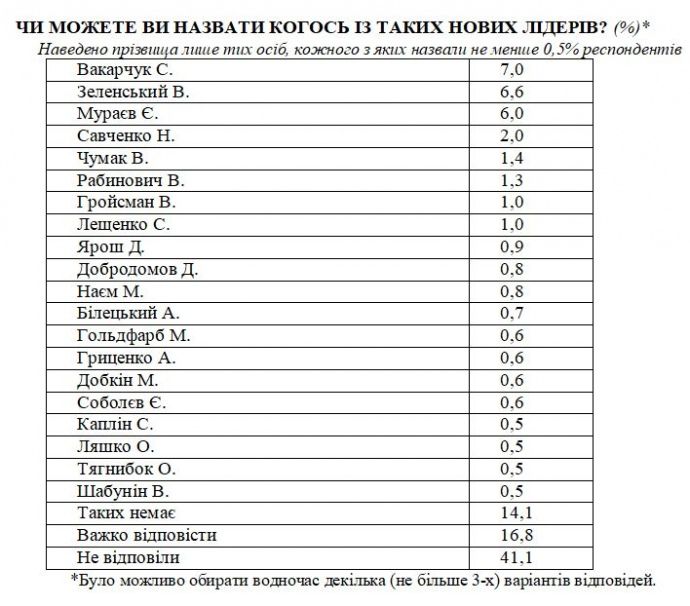 62% украинцев уверены, что в нашей стране должны появиться новые лидеры (против такой идеи – 27% граждан. Больше всего хотят «свежей крови» на западе Украины – 78%, менее импонирует такая идея на юге – 46%. Остальные регионы хотят новых лидеров – 60%.
