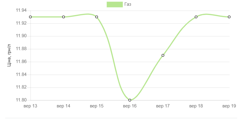 Динамика роста и снижения цен на газ для авто Днепровской области (еженедельный мониторинг цен).