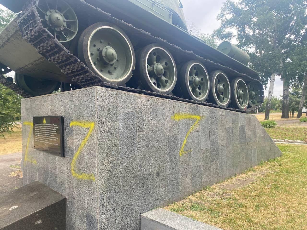 В Днепре неизвестные разрисовали мемориал погибшим бойцам Второй мировой войны и войны с россией буквами Z, которые являются символом российского вторжения в Украину.
