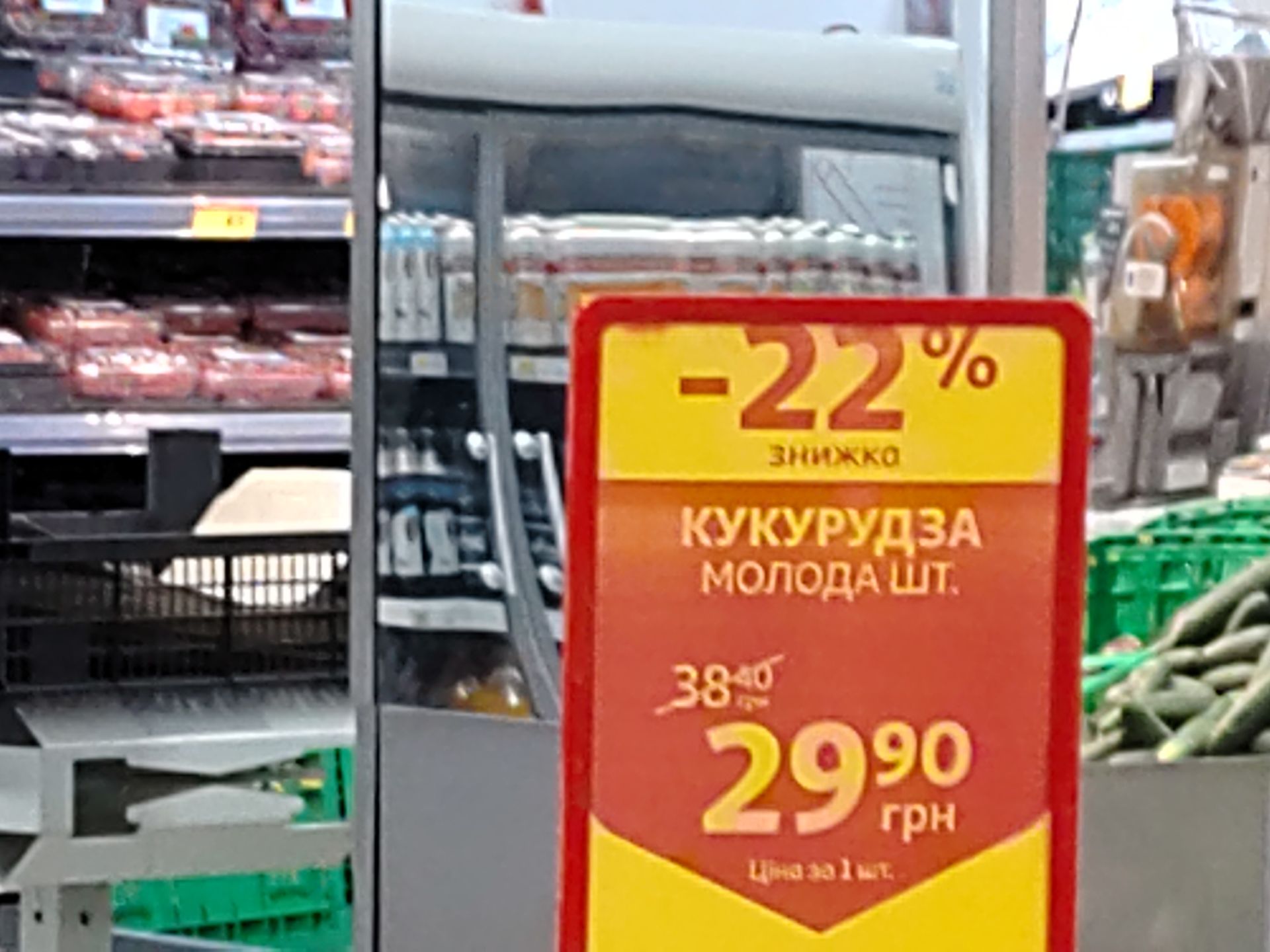 Висока ціна заставляє «символ літа» залежуватись на прилавку, кукурудза потроху висихає, тож в якості «подарунку» для покупців магазини роблять акції та знижують вартість продукту до 29,9 грн.