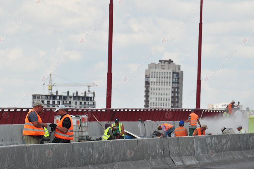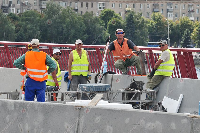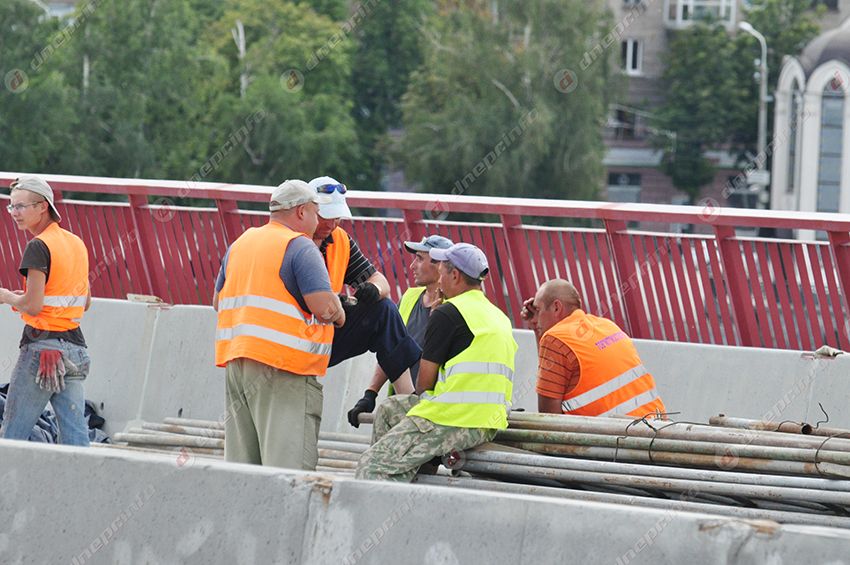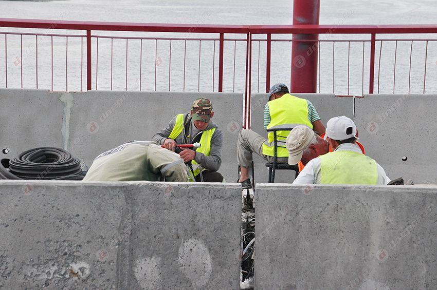 Стоит отметить, что работы на мосту ведутся даже в выходные. Во время нашей ревизии было замечено несколько десятков рабочих. На двух третях второй стороны моста уже сделаны деформационные швы и залито нижнее бетонное покрытие.