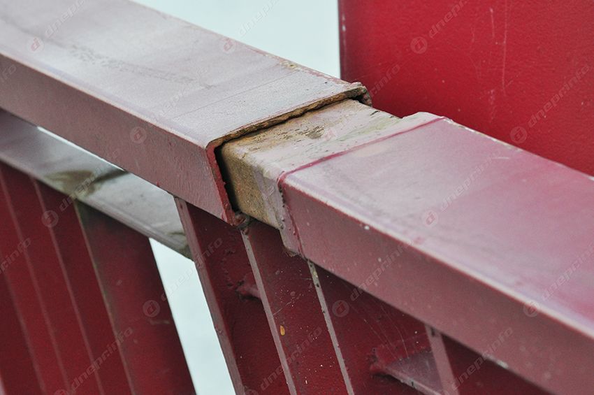 Еще одна проблема - ограждения. Стыки местами сделаны коряво, а краска уже начинает трескаться.