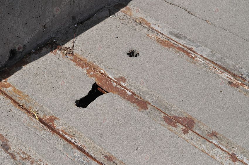 На пешеходной дорожке несколько бетонных блоков, которые закрывают доступ к коммуникациям, начали разрушаться. А несколько и вовсе отсутствуют – их заменили деревянными «заглушками».