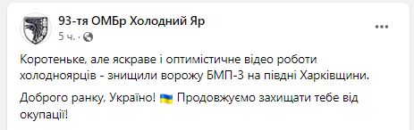 Так, в Харьковской области бойцы 93-й отдельной механизированной бригады "Холодный Яр" продолжают ликвидировать оккупантов и их технику.