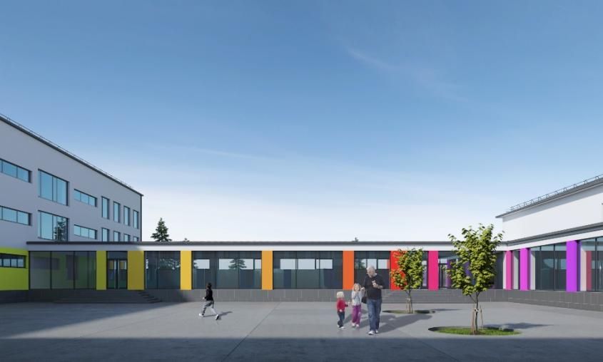 НВК №104 в Днепре обещают преобразить уже в этом году. На данный момент подрядчики проделали уже 30% работ. Масштабы работ – колоссальные, ведь здание не ремонтировалось 50 лет. Школа получит новую крышу, утепленный и яркий фасад, новые окна, двери и все коммуникации. Кроме того, она станет доступной для детей с особыми потребностями.