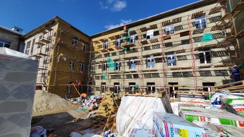 Ремонт Сурско-Литовской школы выполнен более, чем наполовину. Сейчас подрядчики выполняют работы по утеплению фасада, внутренней и наружной отделке и благоустройству. Школа сможет принять 450 учеников.