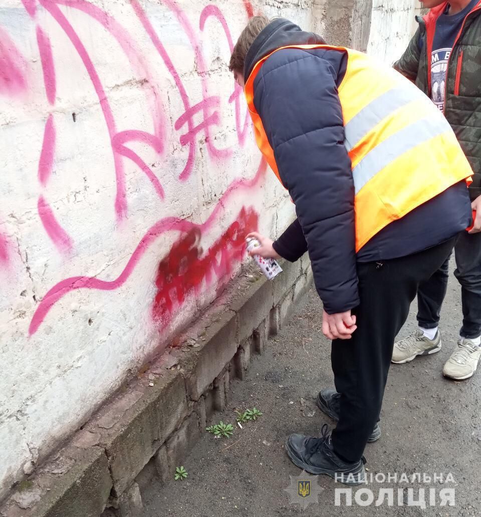 Сотрудники ювенальной превенции Днепропетровской области присоединились к акции по уничтожению надписей с рекламой наркотиков. Так, 17 апреля инспекторы вместе со студентами 3-го курса Монтажного техникума зарисовывали надписи с рекламой сайтов и телеграмм-каналов, на которых продаются наркотические вещества.