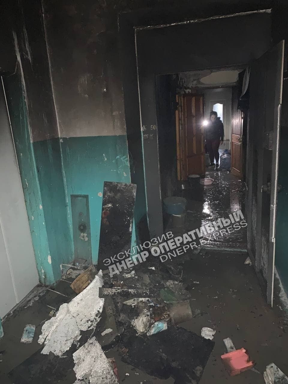 Черные стены и пепел на полу: как выглядит внутри обгоревший дом на Слобожанском проспекте (ВИДЕО)