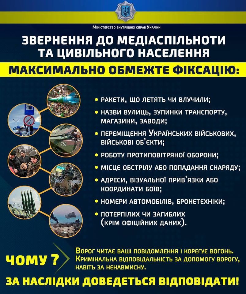 Поэтому Министерство внутренних дел напомнило гражданам, что категорически запрещено фотографировать и публиковать в социальных сетях.