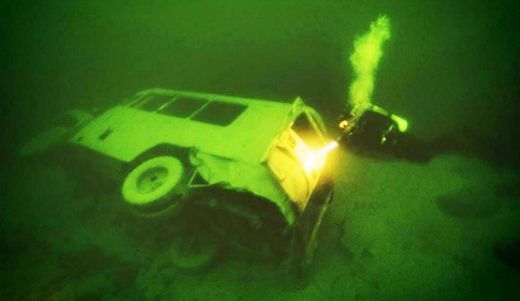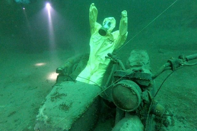 Напомним, на дне этого карьера дайверы разместили «Жигули», кабину КАМАЗа, автобус, цистерну, мотоцикл, несколько манекенов и даже бюст Ленина.