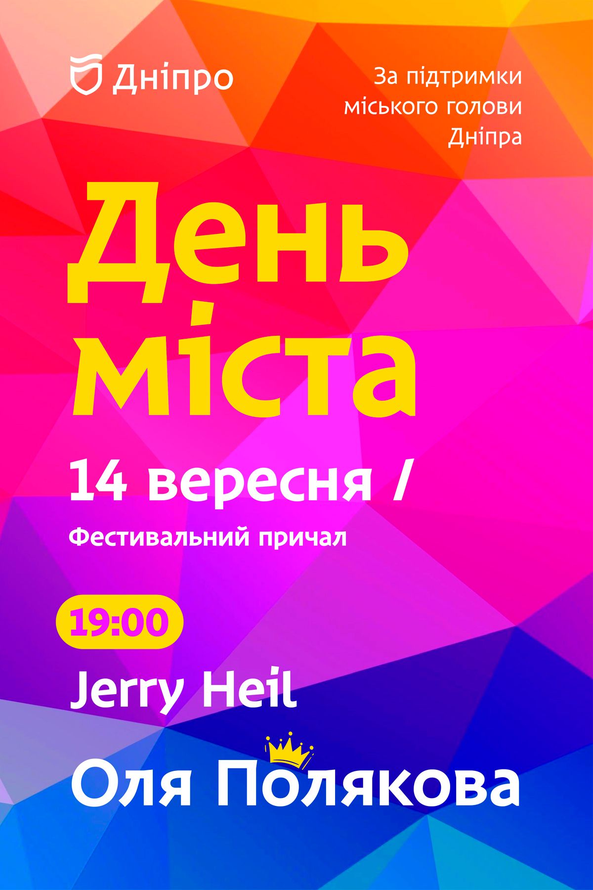 В этом году отмечать день рождения города Днепр приедут знаменитые артисты, которых любят и ценят не только в Украине: Оля Полякова, Jerry Heil, группа Baccara - песни и музыка, которые понравятся всем! Не пропустите незабываемые выступления любимых артистов при поддержке городского мэра!