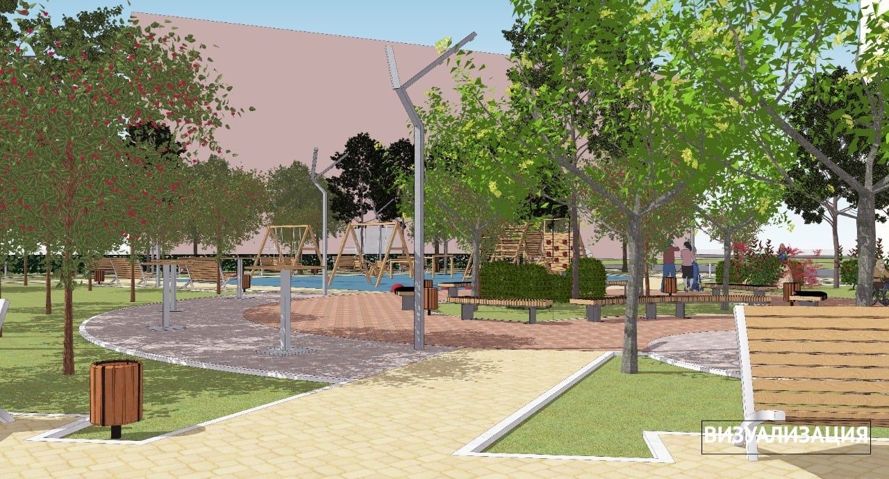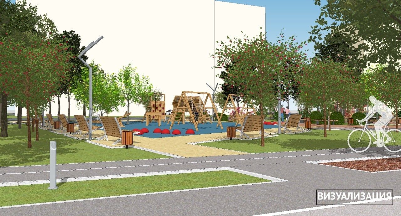 Планируют оборудовать дорожки из тротуарной плитки, асфальтированную велосипедно-беговую дорожку, которая должна подсвечиваться. Хотят озеленить территорию, посадить новые деревья и кусты, засеять газон. Также обустроят уличное освещение, поставят лавочки и урны.