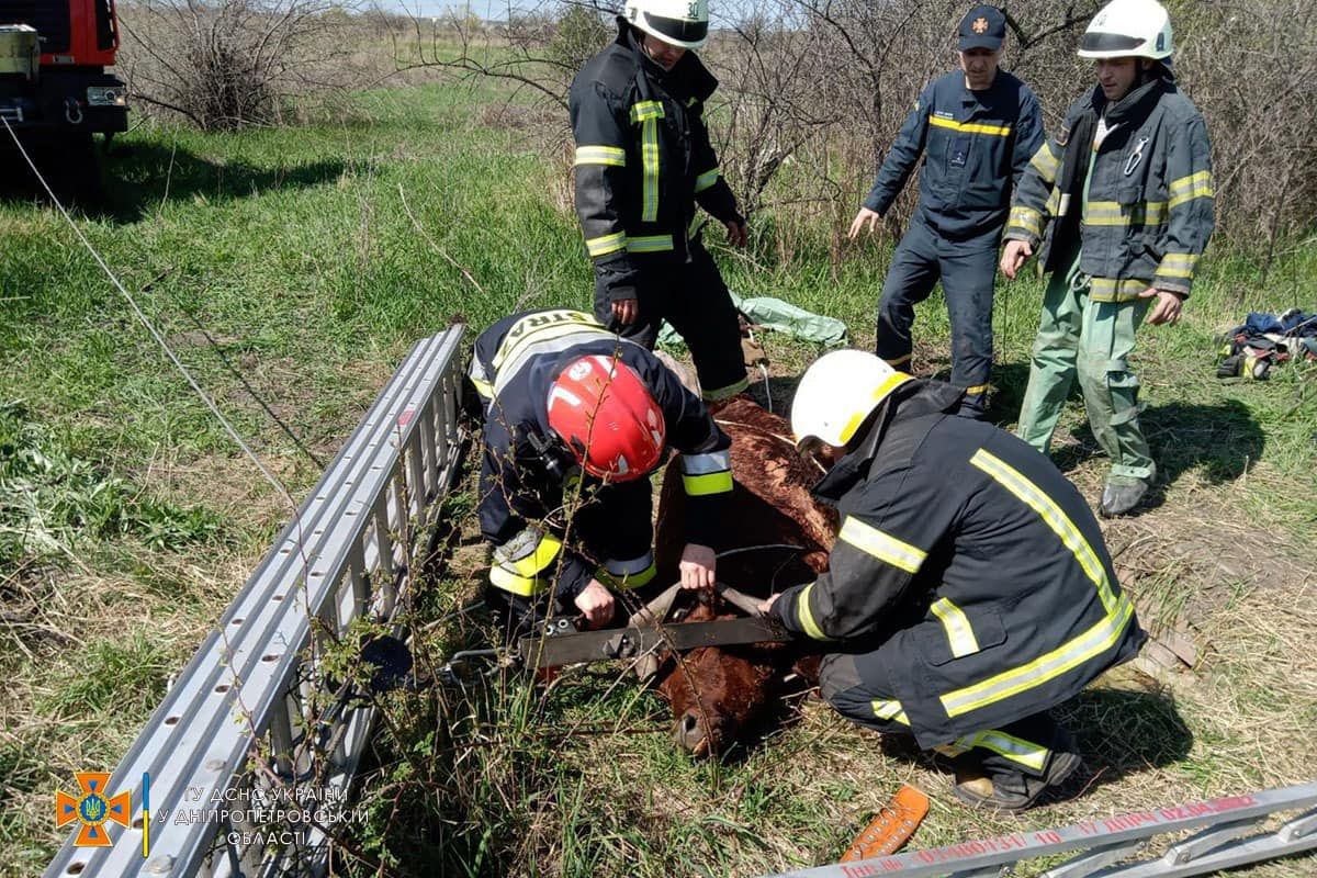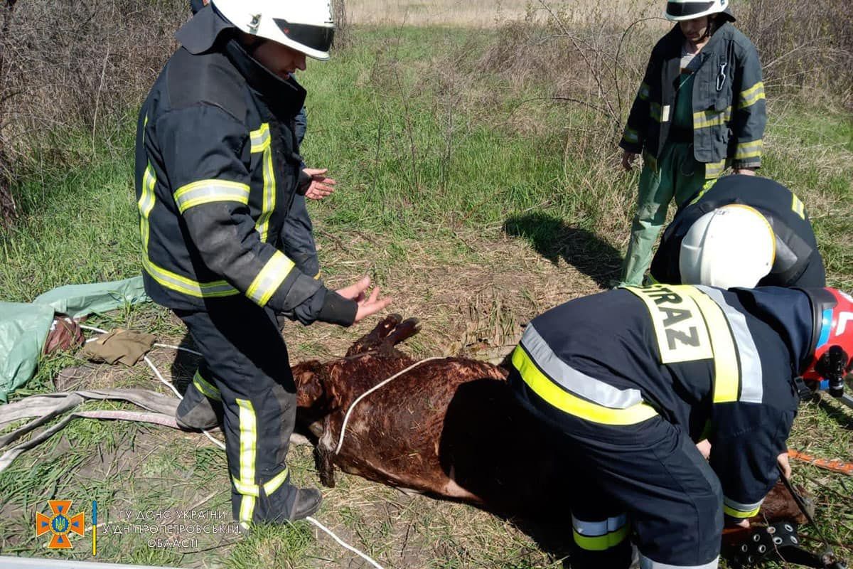 Днепровские спасатели вытащили теленка Ромашку из колодца