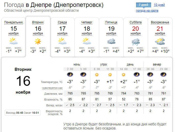 В Днепре же на этой неделе температура воздуха ночью опуститься до минус 6. Днем от -1 до +3. Всю неделю сухо и солнечно, на выходных до +10, но обещают мокрый снег с дождем в субботу.