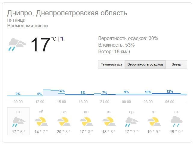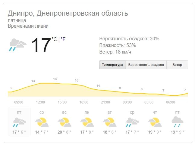 В Карпатах, на горной вершине Поп Иван Черногорский зафиксированы первые заморозки. Температура воздуха опустилась до минус 3 градусов. В Днепре и области, к счастью, будет значительно теплее. В Днепре ожидается пасмурная погода, утреннее небольшое прояснение продлится совсем недолго. Днем столбик термометра покажет 16 — 17 градусов. Температура воздуха ночью — 6 — 7 градусов тепла. Порывы ветра 3-4 м/с. Возможен небольшой дождь.