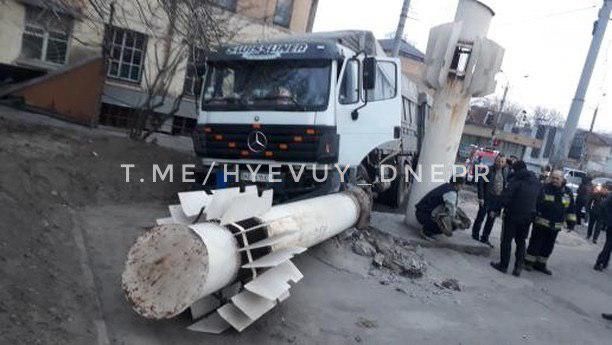 После столкновения грузовик просто отбросило на вентиляционные трубы метрополитена.