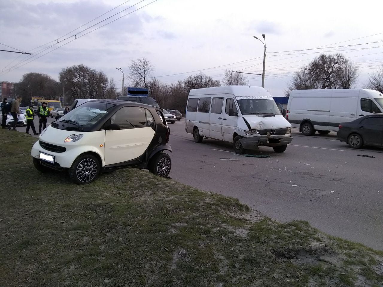 По словам водителя маршрутки, он передвигался по второй полосе движения, а водитель Smart – по третьей. Потом водитель легкового авто перестроился во вторую полосу перед маршруткой и резко затормозил, что привело к столкновению.