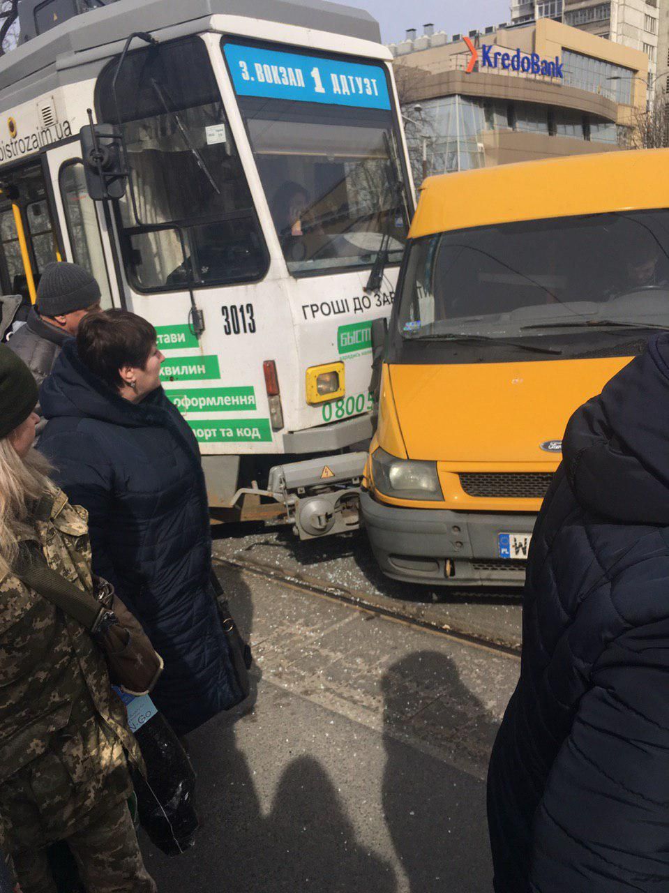 В Днепре трамвай протаранил микроавтобус.