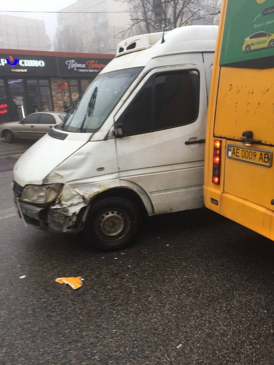 Движение затруднено: в Днепре на жилмассиве Тополь не разминулись две маршрутки
