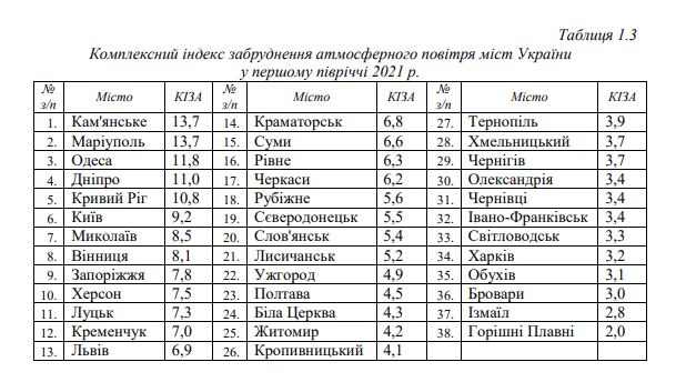 Так, за полгода 2021 года индекс загрязненности воздуха в Днепре снизился на 3.1 пункта — с 14.1 по итогам прошлого года до 11 за первые 6 месяцев 2021–го. Смотрите данные ниже, там можно сравнить показатели.
