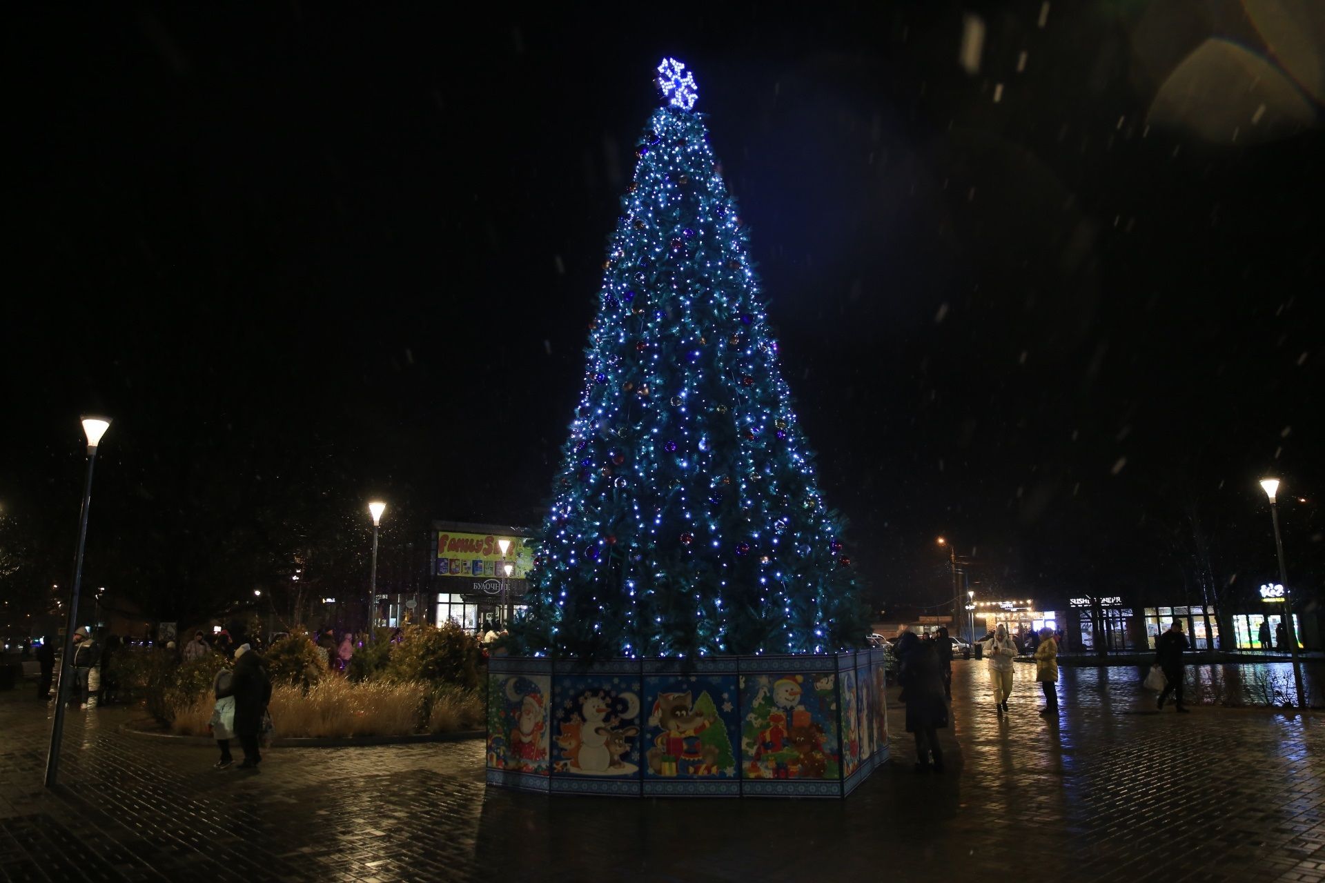 Открыли елочку также на жилмассиве Западный. Тут ее поставили впервые. И теперь местным жителям не нужно ехать далеко, что погулять на Новый год. Удобно это для семей с маленькими детьми, теперь не придется таскать их в транспорте.