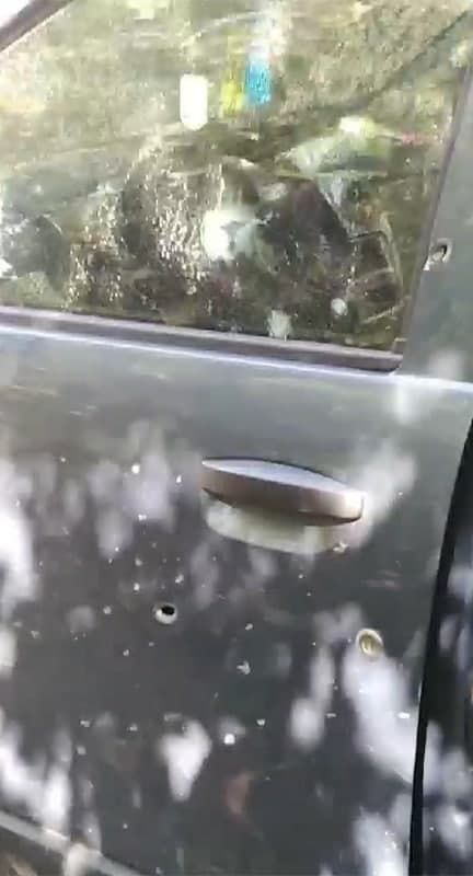 Граната взорвалась во время движения машины. У автомобиля Renault оторвало заднюю дверь. К счастью, обошлось без жертв.