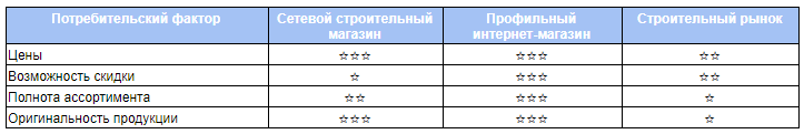 Сведем рассмотренные критерии воедино с присвоением соответствующего рейтинга по шкале от 1 (худший) до 3 звезд (лучший):