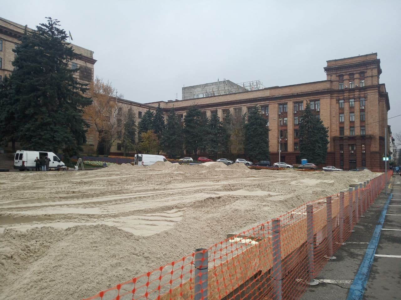 Горы песка и забор: что строят на площади Героев Майдана (ФОТО)