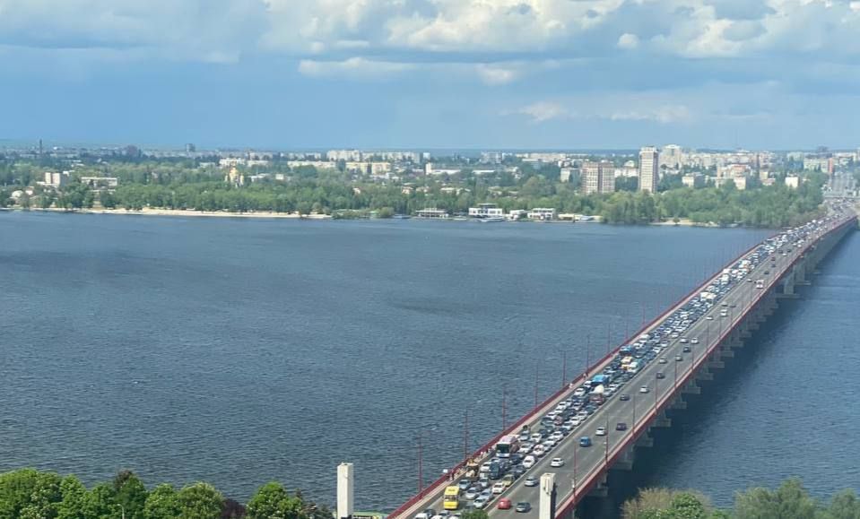 Жители Днепра жалуются на то, что движение по Новому мосту по направлению к правому берегу парализовано.