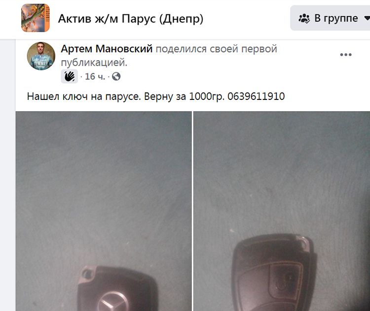 На Парусе парень нашел ключи и прямым текстом написал, что вернет за 1000 гривен. Местные, мягко говоря, раскритиковали такой подход. Но нашедшего это не смутило, и он ждет хозяина ключа и свою тысячу гривен. А что и за какие находки получали вы кроме "спасибо"? – интересуются в фейсбук-группе Райончик.