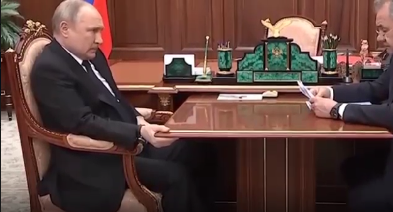 А до цього, 12 квітня, президент рф зустрівся з головою російського міноборони шойгу. На цій зустрічі путін виглядав дуже дивно: голова, яка нібито була непропорційна до тіла, рука вчепилася в стіл зовсім нерухомо. Диктатор сидів у неприродній позі і майже не рухався.