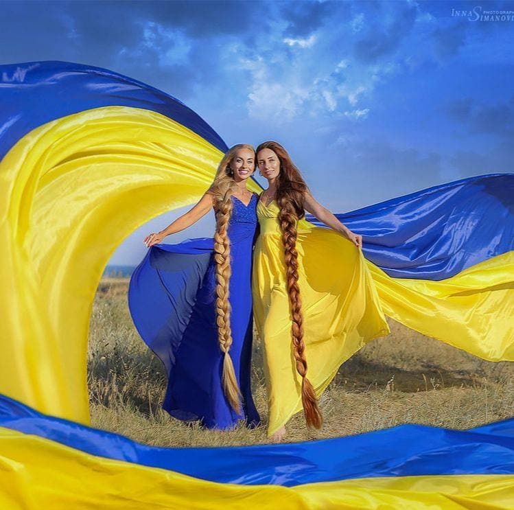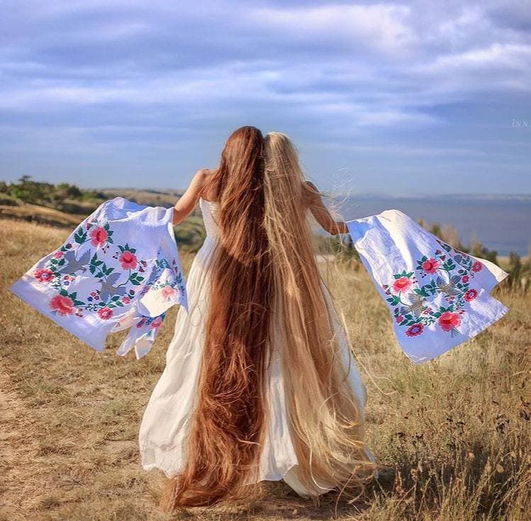 Надев платья в цветах государственного флага, две Алены позировали перед камерой и демонстрировали длину и густоту своих кос.