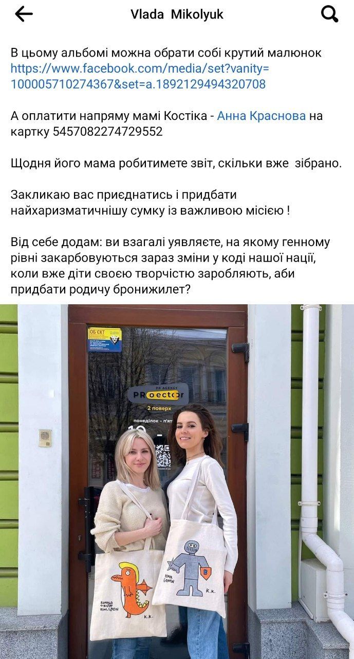 Сейчас ситуация там очень тяжёлая, поэтому дяде Костика очень нужен бронежилет. Поэтому он и решил делать рисунки на эко-сумках и продавать их.