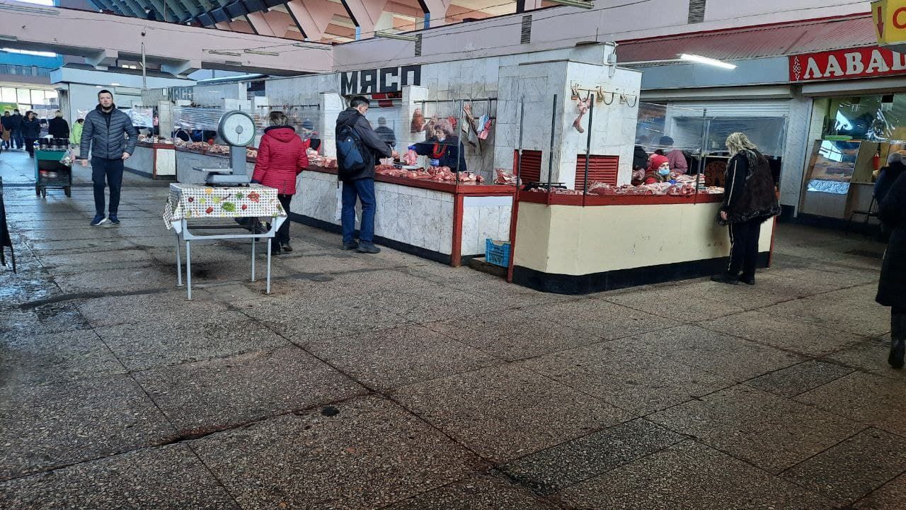 Ситуация на рынке практически не изменилась. На "Озерке", как для середины рабочего дня людей было достаточно много. Внутри торгового павильона как обычно продают мясо, зелень, овощи и фрукты. Продавцы активно предлагают свои товары. Просят попробовать мед и гранатовый сок. Вокруг прилавков на уровне лица натянута пищевая пленка. Большинство продавцов в масках, но держат их на подбородке. Посетители тоже не все придерживаются масочного режима.