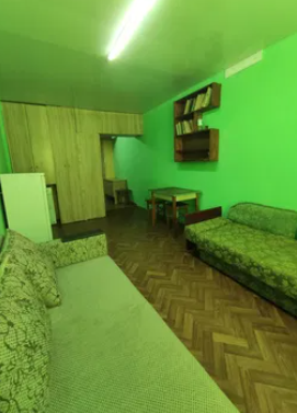 Однокомнатная квартира в переулке Добровольцев обойдется в 4,5 тыс грн. Стиральной машины нет, но есть сидячая ванна. Кухня на этаже, балкона нет. На стене есть ковер, в комнате стоит раскладной диван.