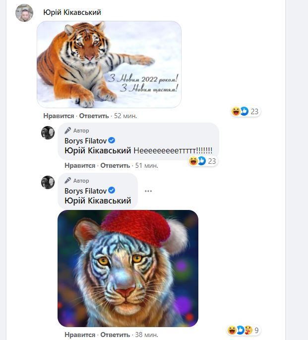 Под публикацией мэру снова оставили тигра в новогоднем колпачке.