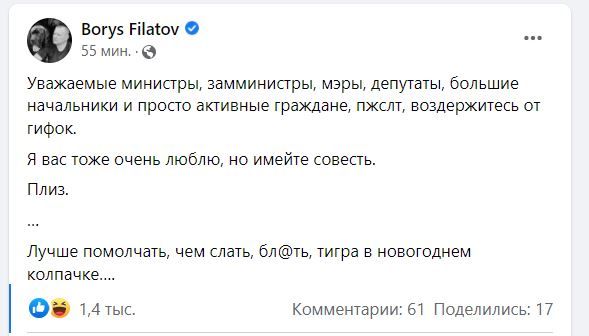 Сам же городской глава сказал, что любит и уважает всех тех, кто его поздравил, но лучше промолчать, чем бросать гифки в чатиках.