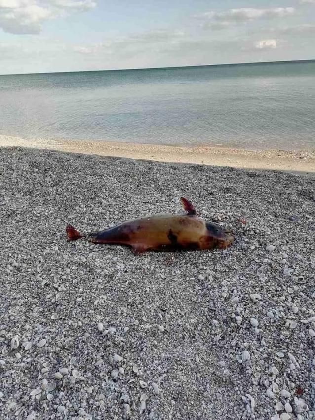 В Приазовском районе, в селе Степановка на берег выбросило детеныша дельфина. Вероятно, он погиб за несколько дней до этого. Снимком на своей странице в Фейсбук жительница Мелитополя.
