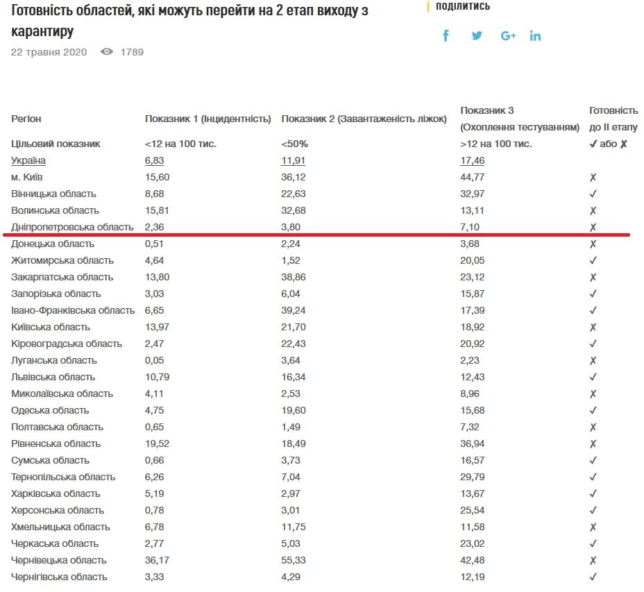 Сегодня утром, 22 мая, Кабмин опубликовал карту Украины, на которой отмечено, какие области готовы ко второму этапу выхода из карантина. Так, только 13 областей могут смягчать карантин, еще 11 – нет, в том числе, и Днепропетровская.