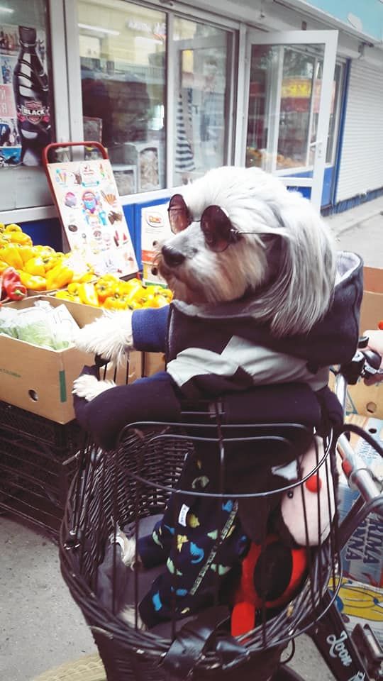 На 12 Квартале заметили собаку Элтона Джона на велосипеде