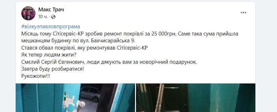 В Кривом Роге из-за сильного снегопада обрушилась крыша многоэтажки на улице Бахчисарайской. Об этом на своей странице в Facebook рассказал депутат криворожского горсовета Максим Трач.