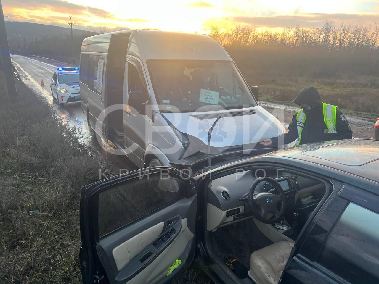 Под Кривым Рогом машина скатилась со склона и врезалась в маршрутку.