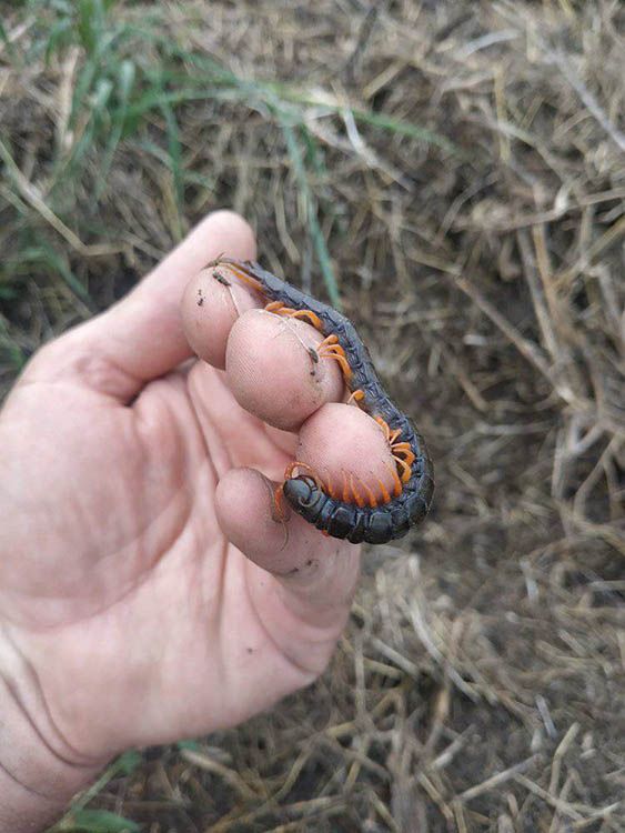 Мужчина не только обнаружил сколопендру, но и не побоялся взять её в руки.