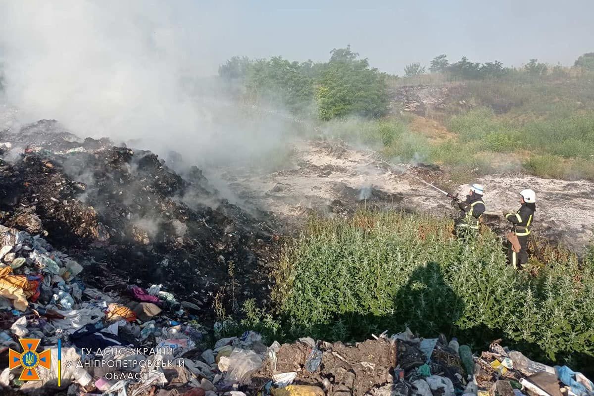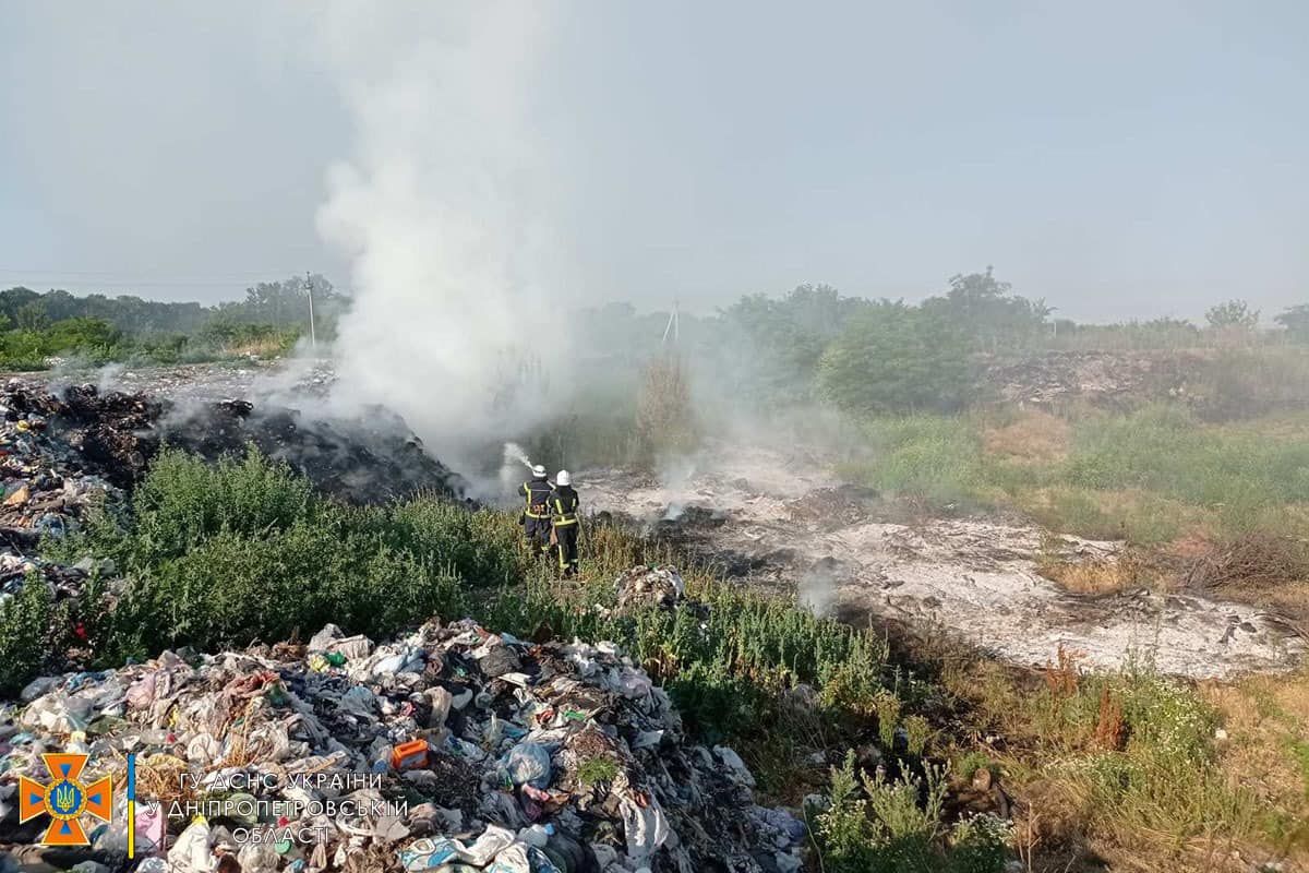 На Днепропетровщине спасатели более 14 часов тушили пожар на мусорном полигоне