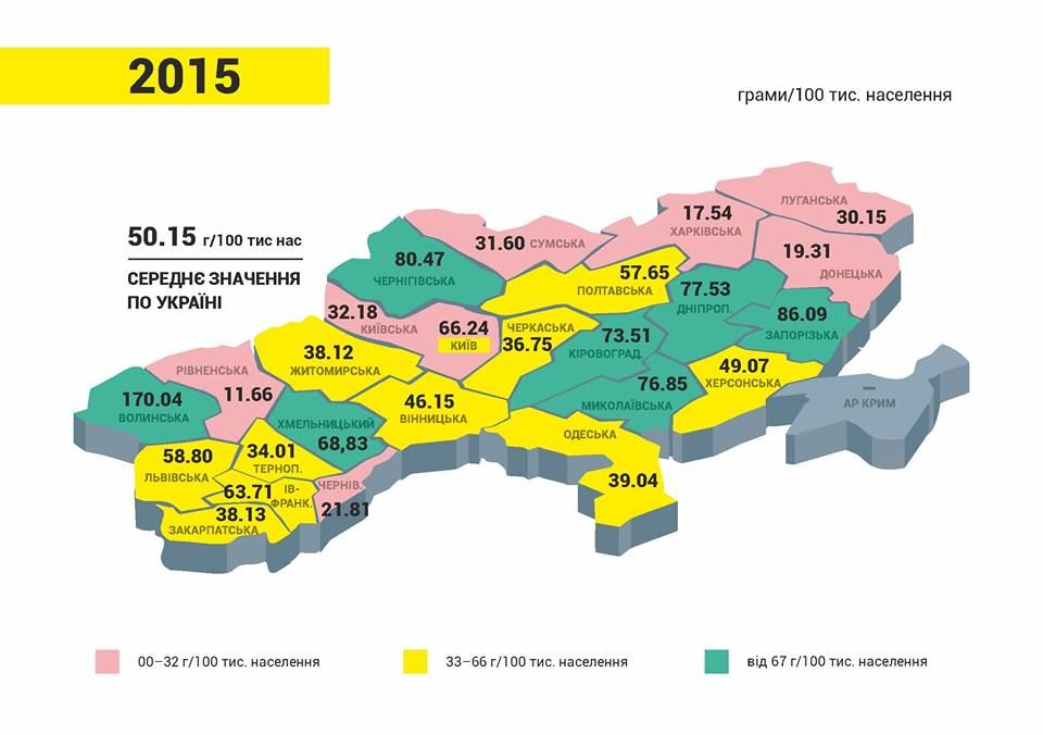 В 2015 году за использованием морфина в больницах лидировала Волынская область, а меньше анальгетика применяли на Ровенщине. Днепропетровская область с показателем 77,53 г / 100 тысяч населения была на 4 месте по Украине.