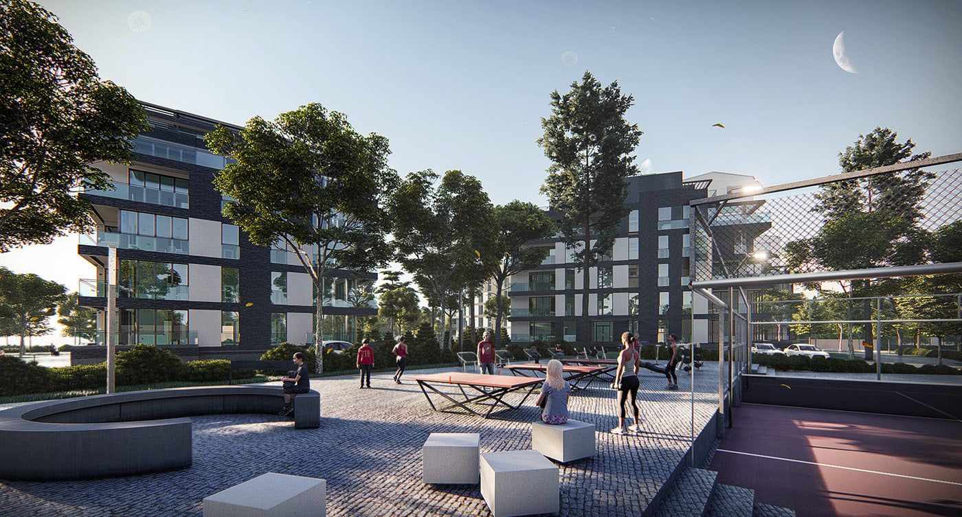Пока нет точных дат или сроков, когда проект начнут воплощать в реальность. Судя по рендерам, комплекс будет действительно малоэтажным, и похожим на хайтек-деревню. Посреди двора будет что-то похожее на озеро. По традиции есть парковки, зоны для занятий спортом, и семейного отдыха.