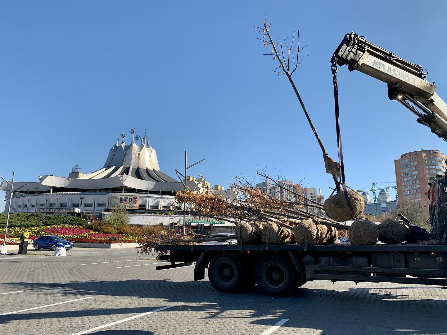 В Днепре на экопарковке возле государственного цирка сегодня начали высаживать серебристые клены.