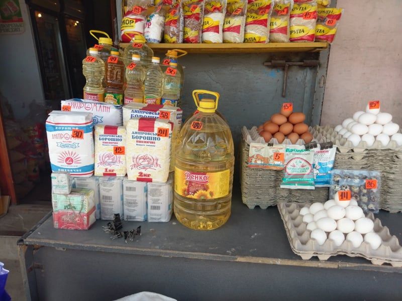 Самые ходовые товары – мясо, яйца, сахар, мука и подсолнечное масло – продают на «первой» линии рынка. Цены тут отличаются от магазинных в пределах 10-20 грн. Замороженный мясной и рыбный товар лежит в ящиках, часто на них попадают солнечные лучи, лед тает, и рыба в «глазури» медленно превращается в незамороженную.