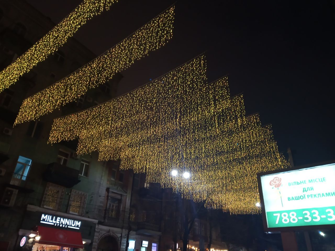Так, на улице Сечевых Стрельцов появился необычный "светящийся дождь", который радует глаз и сразу улучшает настроение.