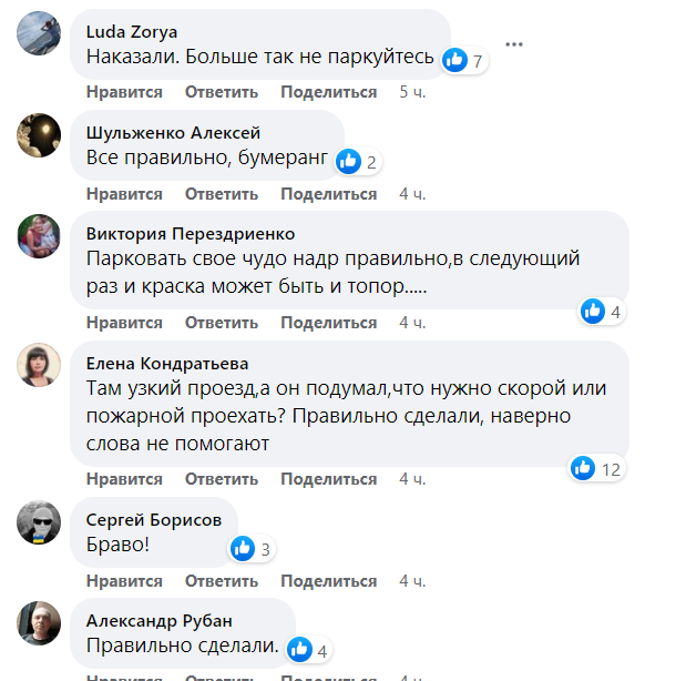 У коментарях дніпряни по-різному відреагували на це: деякі підтримали, зазначаючи, що тільки так можна провчити автохама. Інші ж написали, що це неподобство.